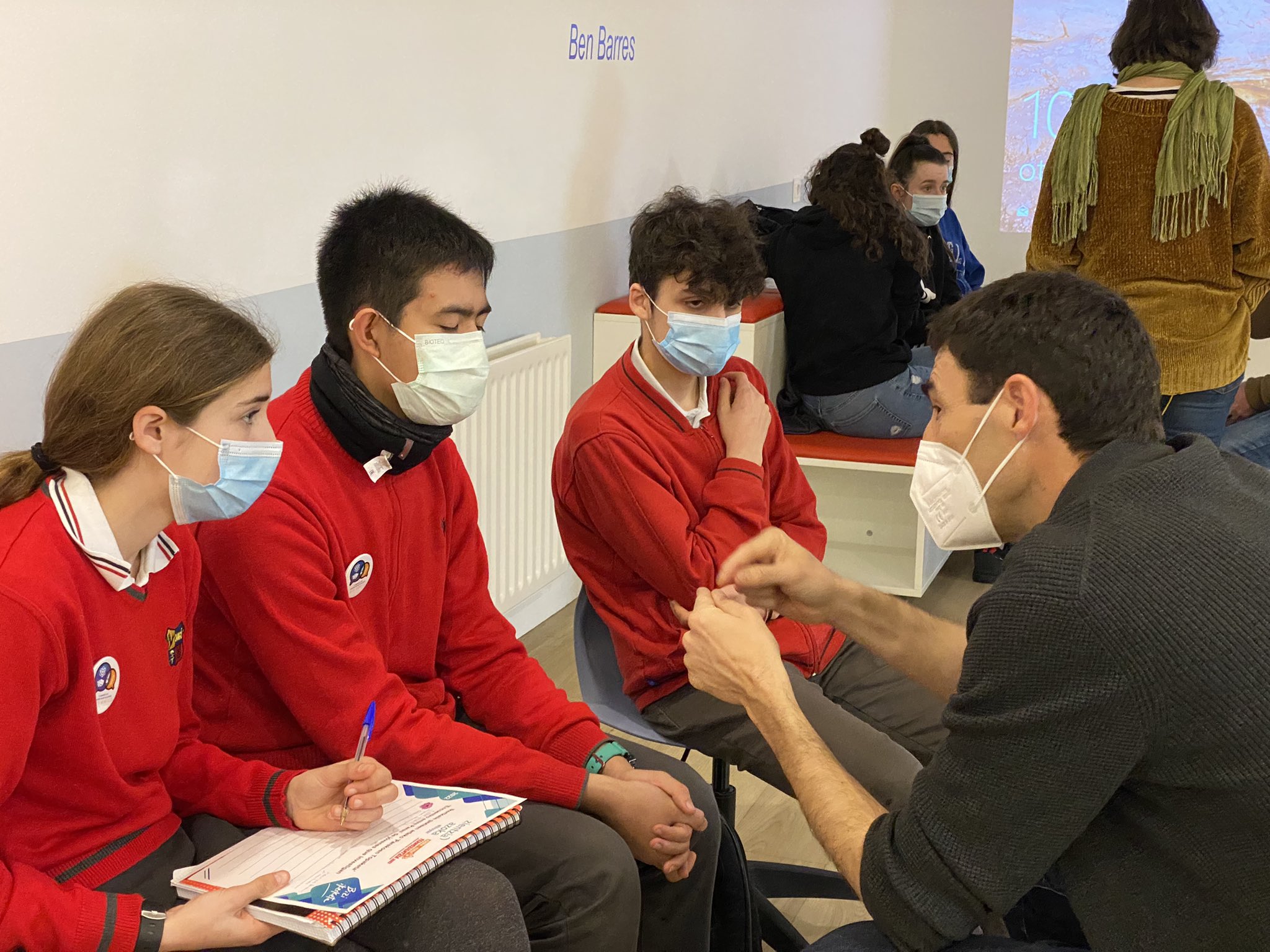 El objetivo del encuentro es que jóvenes estudiantes de secundaria compartan proyectos con personas investigadoras. Durante toda la mañana han estado intercambiando sugerencias y consejos. Han participado estudiantes de Educación Secundaria de Navarra de los centros Amazabal BHI de Leitza, el Colegio Luis Amigó de Mutilva y el Biurdana BHI de Pamplona, que participan en el proyecto ‘Elhuyar Zientzia Azoka’. En total han sido 11 grupos y una treintena de estudiantes. Y junto a ellos 14 jóvenes investigadores e investigadoras de universidades navarras y de diferentes centros de